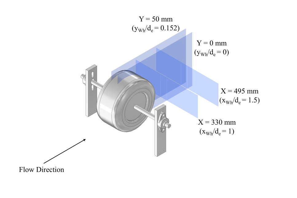 Understanding the development of wake from a rotating wheel can provide insight into the best method of controlling the flow to achieve minimal drag. This dataset from Loughborough University provides PIV measurements in a number of salient planes to show the development of the wake from a rotating wheel.